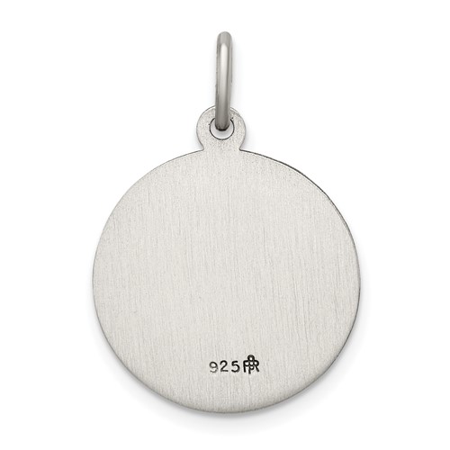 This round guardian angel medal is made of antiqued sterling silver. Engravable on reverse. Item size: 11/16 inch tall by 11/16 inch wide without bail. This item is the size of a dime. Inscription: OUR GUARDIAN ANGEL PROTECT US. Weight: 2 grams. Made in the USA. Guardian angels are assigned by God to watch over each person in this world.