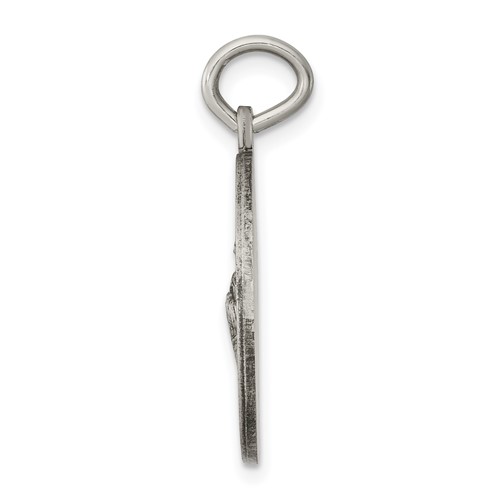 This round St. Jude Thaddeus medal is made of sterling silver. Item size: 11/16in x 11/16in. This item is slightly smaller than a dime. Chain not included. St Jude is the patron saint of hospitals and lost causes.