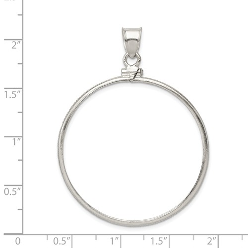 This solid sterling silver 38.2 x 2.8mm plain coin bezel pendant fits silver Morgan and peace dollars. Screw top. This bezel also fits Eisenhower dollars [1971-1978]. Fits up to a 3mm wide chain. Weight: 2.3 grams. Made in the USA. Did you know? The Morgan dollar was a United States silver dollar coin minted from 1878 to 1904. The Peace dollar coin was minted from 1921 to 1928, and again in 1934 and 1935.