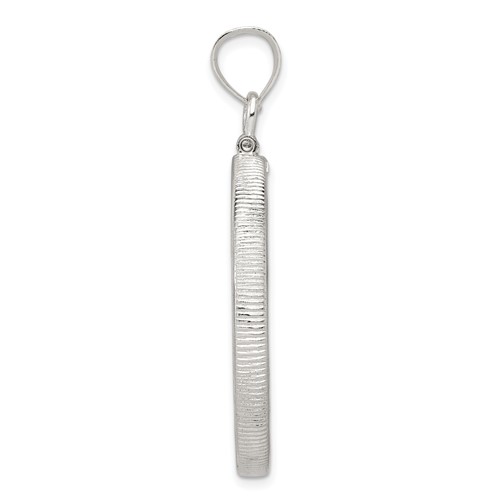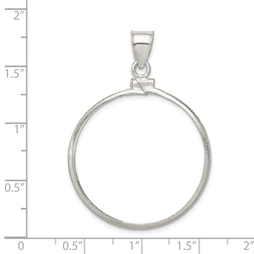 This sterling silver smooth bezel pendant holds a United States half dollar coin. It fits the following coins: Walking Liberty half dollars 1916-1947, Franklin half dollars 1948-1963, and Kennedy half dollars 1964-present. Dimensions: 30.5mm x 2.1mm. Fits up to a 4.5mm wide chain. Screw-top. Coin not included.