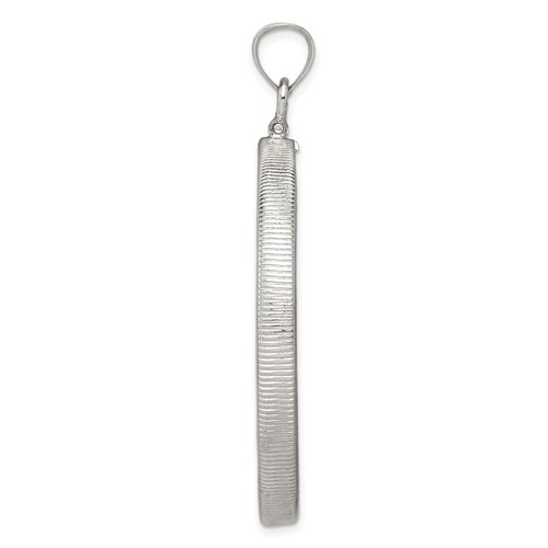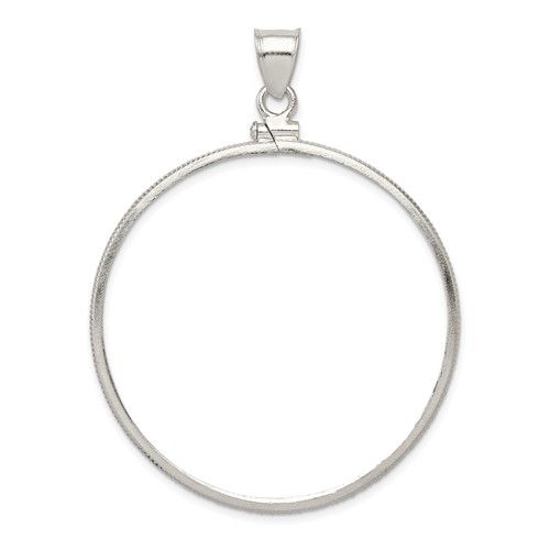 This 40.6 x 3.1mm plain coin bezel pendant with screw top is made of solid sterling silver. Fits 1 oz silver walking Liberty dollars, 1 oz silver American Eagle coins, 1 oz Chinese Silver Pandas, 1 oz Australian Silver Kookaburras and 1 oz Australian Silver Koalas. Fits up to a 3.5mm wide chain. Made in the USA.