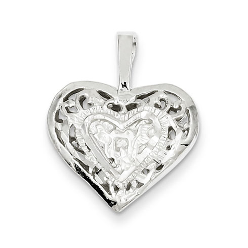Sterling silver filigree heart charm. Measures 5/8 inch tall by 11/16 inch wide without bail. Weight:2.75 grams.