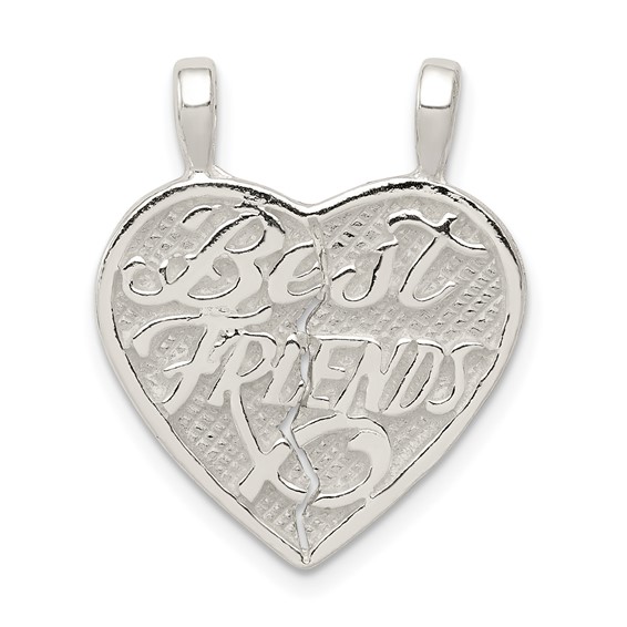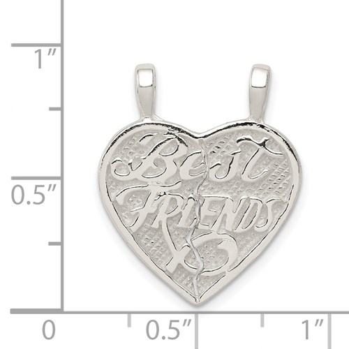 Sterling silver best friends break apart heart charm is designed for two people to wear one piece each. Measures 5/8 inch tall by 11/16 inch wide without bail. Weight: 2.4 grams.