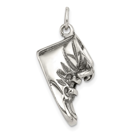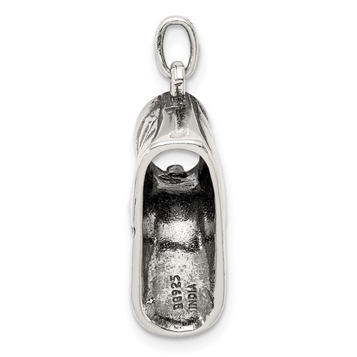 Sterling Silver Antiqued Baby Shoe Pendant. Weight:3.25 grams. Measures 11/16 inch tall by 7/16 inch wide without bail.