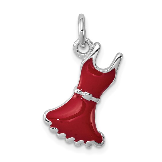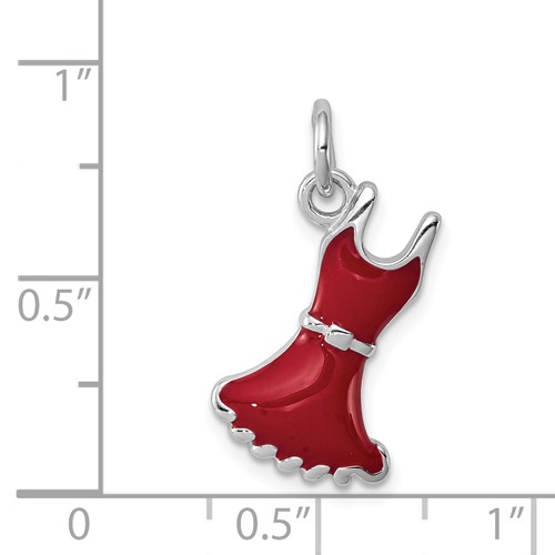 Sterling Silver Enameled Red Dress Charm. Weight:1.75 grams. Measures 11/16 inch tall by 7/16 inch wide without bail.