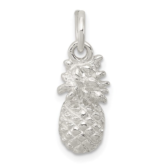 Sterling silver pineapple charm has a textured and polished finish. Weight: 1.25 grams. Measures 1/2 inch tall by 1/4 inch wide without bail. Chain not included.