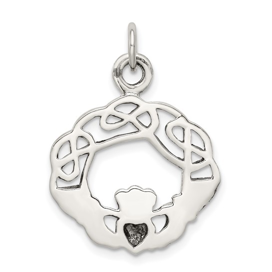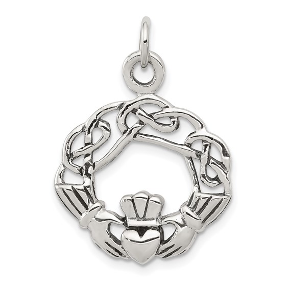 Sterling Silver Antiqued Claddagh Pendant. Weight: 3.5 grams. Measures 3/4 inch tall by 13/16 inch wide without bail.