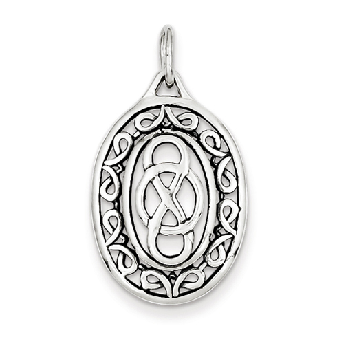 Oval celtic charm is made of polished sterling silver. Item size: 1 inch tall by 11/16 inch wide without bail. Weight: 2.5 grams.
