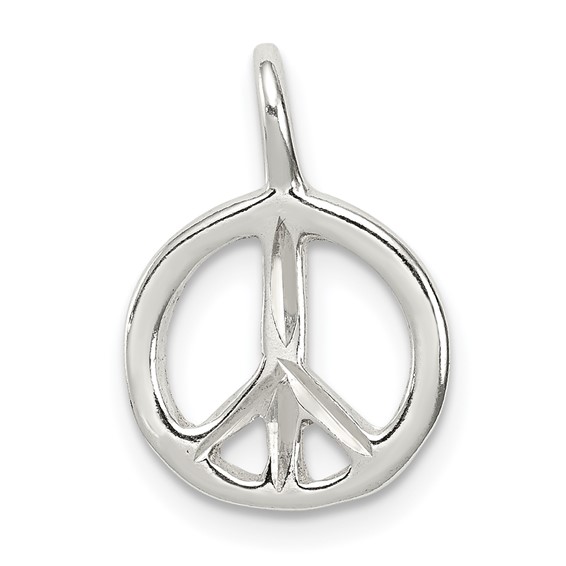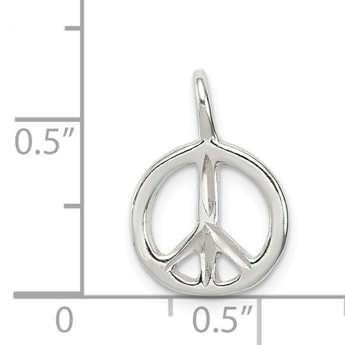 This very small sterling silver peace charm has a polished finish. Weight: 1 gram. Measures 7/16 inch tall by 7/16 inch wide without bail. Fits up to a 3mm wide chain. Made in India. Ships from USA. Available while supplies last.