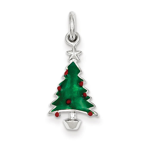 Enameled green Christmas tree charm is made of sterling silver. Weight:1 grams. Measures 11/16 inch tall by 3/8 inch wide without bail.
