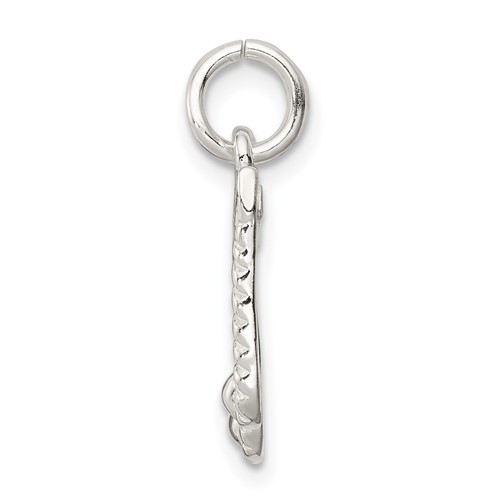 This textured music notes charm is made of sterling silver. Measures 9/16 inch tall by 1/4 inch wide without bail. Weight: 0.8 grams.