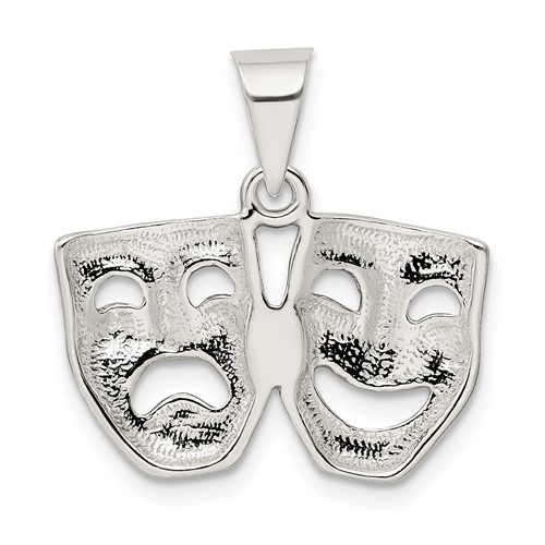 Comedy and tragedy charm is made of polished sterling silver. Item size: 1/2in inch tall by 7/8 inch wide without bail. Weight: 2.75 grams.