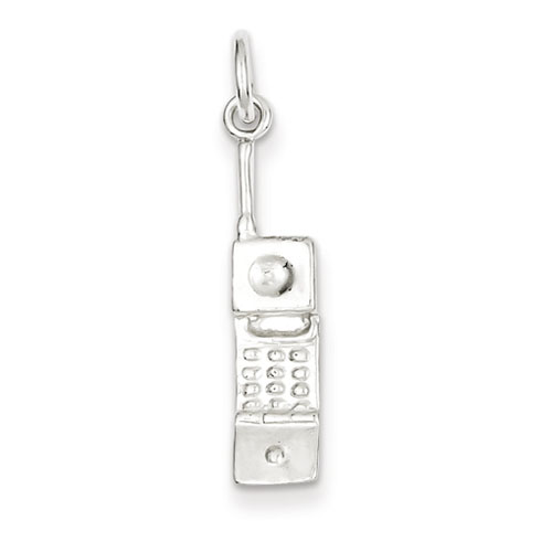Cell phone pendant is made of sterling silver. Weight: 1.75 grams. Measures 3/4 inch tall by 3/16 inch wide without bail.