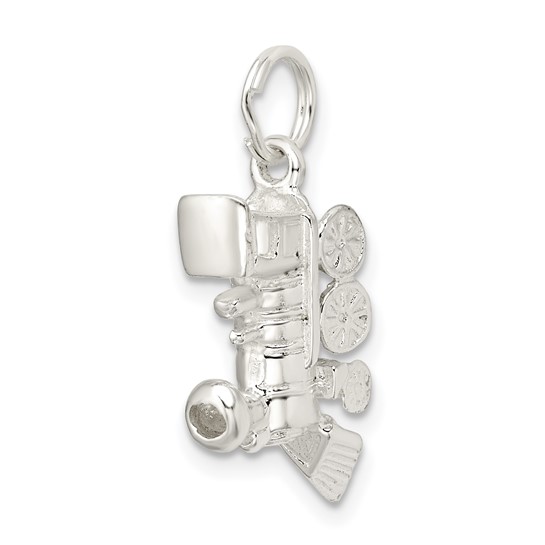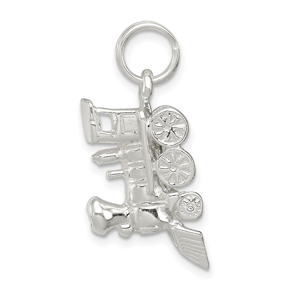 Train engine charm is made of polished sterling silver. Weight: 2 grams. Measures 3/8 inch tall by 3/4 inch wide without bail.