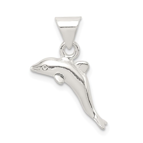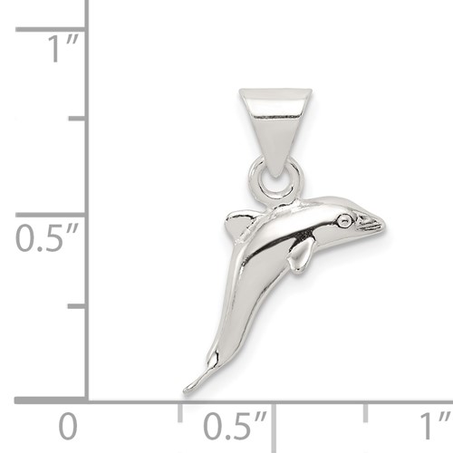 This three dimensional dolphin charm is made of sterling silver. Measures 1/2in inch tall by 9/16 inch wide. Weight: 1.37 grams. Jump ring fits up to a 3mm wide chain. Import.