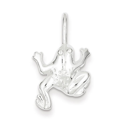 Sterling silver frog charm is diamond-cut. Open back. Weight:1.37 grams. Measures 5/8 inch tall by 7/16 inch wide. Made in India.