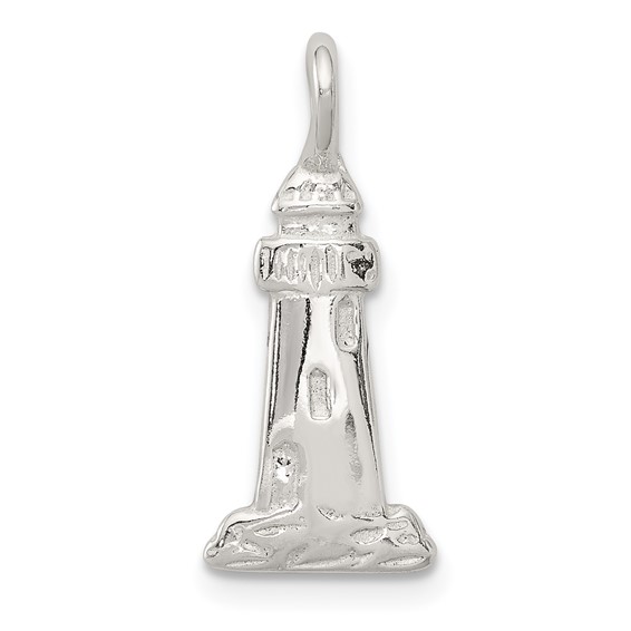 Lighthouse charm is made of polished solid sterling silver. Weight: 0.87 grams. Measures 5/8 inch tall by 3/8 inch wide. Fits up to a 2mm wide chain. Made in India. Ships from USA.