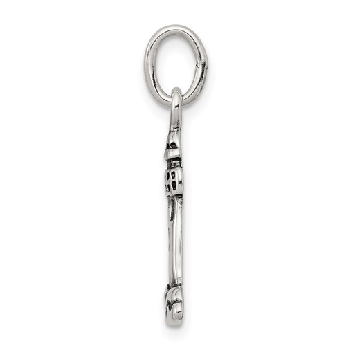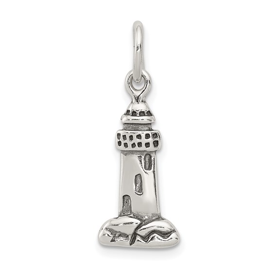 Lighthouse charm is made of antiqued sterling silver. Weight: 0.86 grams. Measures 5/8 inch tall by 5/16 inch wide.