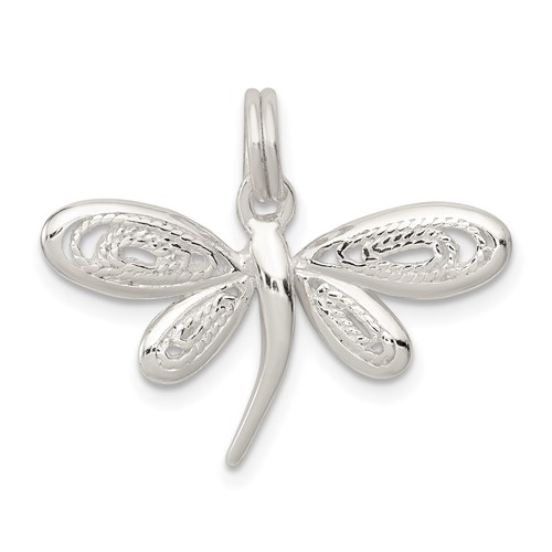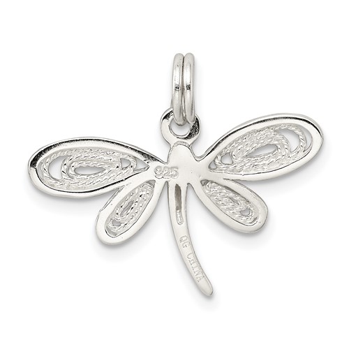 Sterling silver dragonfly charm. Weight: 1.5 grams. Measures 9/16 inch tall by 7/8 inch wide.