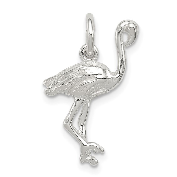 Flamingo charm is made of polished sterling silver. Measures 3/4 inch tall by 1/2 inch wide. Weight: 1.37 grams.