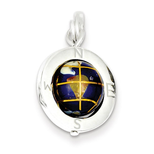 Enameled globe charm is made of sterling silver. Item size: 9/16 inch tall by 9/16 inch wide. Weight: 3.2 grams.
