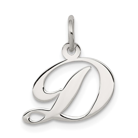 Small script initial D charm is made of solid sterling silver. Measures 3/8 inch tall. Weight: 0.4 grams. Fits up to a 2.5mm wide chain.