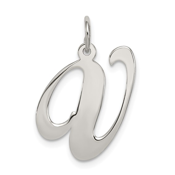 Sterling Silver Small Fancy Script Initial V Charm. Weight:0.4 grams. Measures 3/8 inch tall.