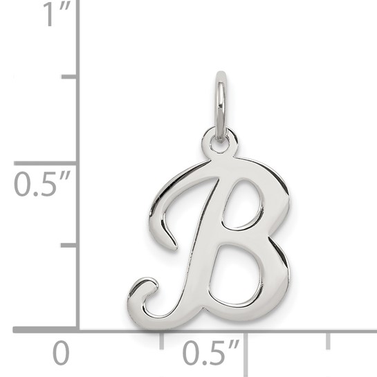 This very small letter B stamped script charm is made of polished sterling silver. Measures 7/16 inch tall. Weight: 0.46 grams. Import.