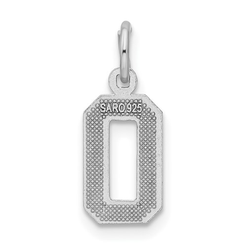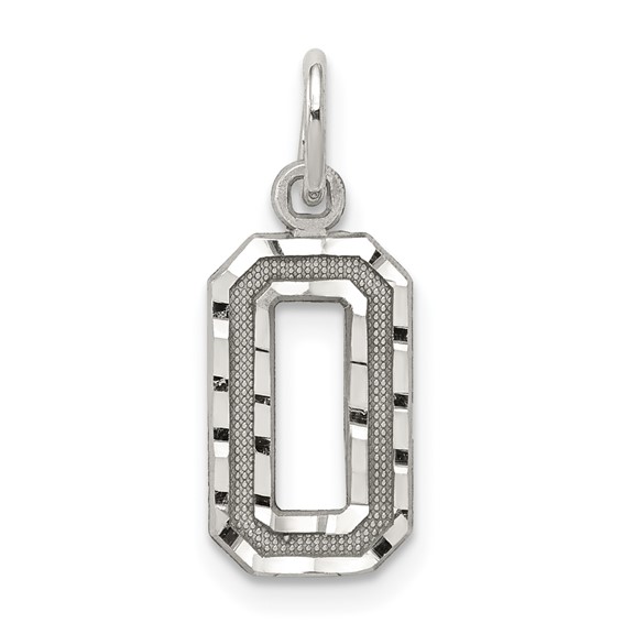 Sterling Silver Diamond-cut #0 Charm. Weight:0.5 grams. Measures 7/16 inch tall by 1/4 inch wide.