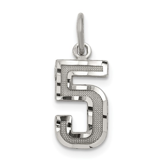Sterling Silver Small Diamond-cut #5 Charm. Weight:0.5 grams. Measures 7/16 inch tall by 1/4 inch wide.
