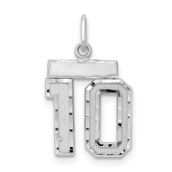 Small #10 charm is made of sterling silver. Weight: 1 gram. Measures 7/16 inch tall.