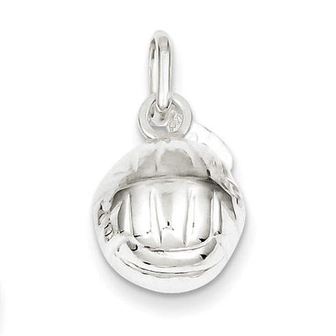 Three dimensional volleyball charm is made of polished sterling silver. Weight: 1.37 grams. Measures 7/16 inch tall by 7/16 inch wide. This charm is 3D and not flat on the back. Chain not included.