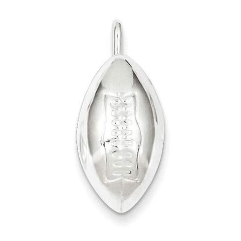 Vertical football charm is made of polished sterling silver. Three dimensional. Hollow. Measures 3/4 inch tall by 1/2 inch wide. Weight:1.87 grams.