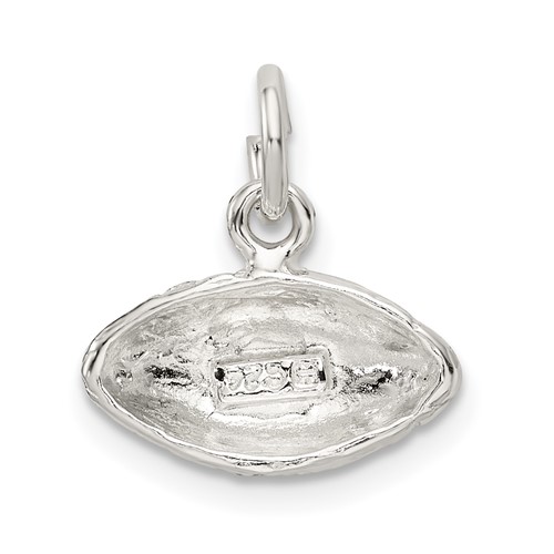 Sterling silver football charm weighs: 1.2 grams. Measures 1/4 inch tall by 1/2 inch wide. Chain not included.