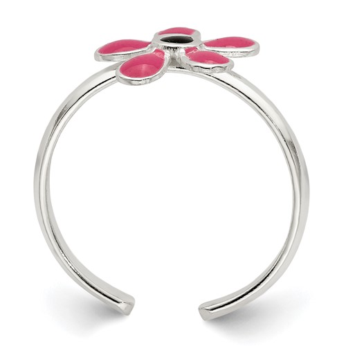 Pink enameled floral toe ring is made of solid sterling silver. One size fits most women. Toe ring width: 2mm. Approximate weight: 1.0 gram. Made in Thailand. Ships from USA.