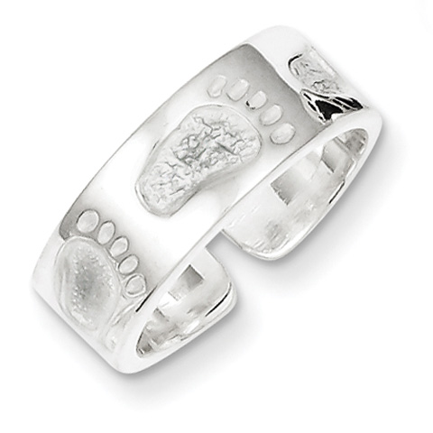 Sterling Silver Antiqued Feet Toe Ring. Width: 6MM. Weight: 2.25 grams. One size fits most.