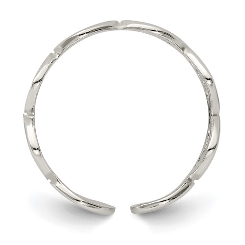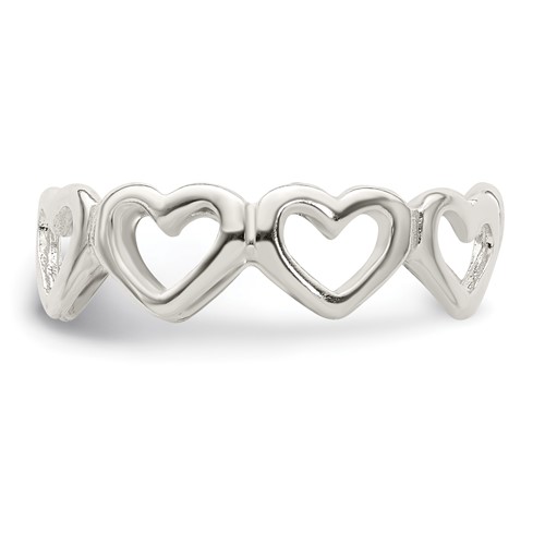 Polished sterling silver toe ring features cut-out hearts. One size fits most. Width: 5mm. Weight: 0.8 grams. Import.