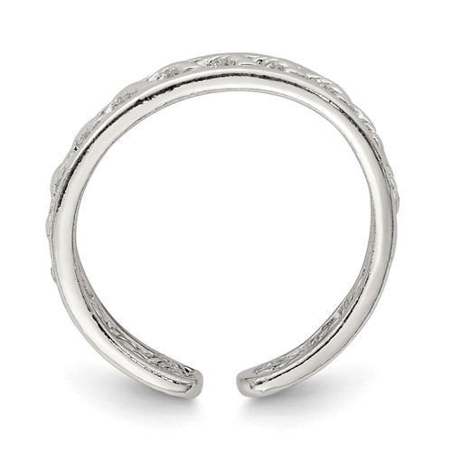 Sterling silver solid toe ring has an intertwined rope design. Weight: 1.1 grams. One size fits most. Made in Thailand. Ships from USA.