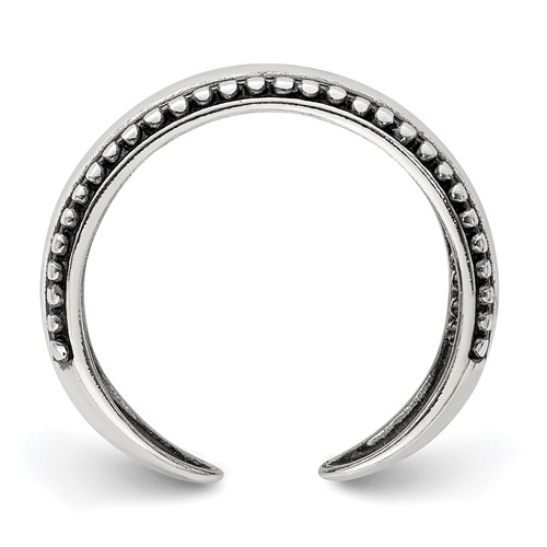 Beaded edge toe ring is made of antiqued sterling silver. One size fits most women. Toe ring width: 5mm. Approximate weight: 1.5 grams. Made in Thailand. Ships from USA.