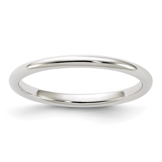 Sterling silver 2mm wedding band has an oval center and polished finish. Made in USA. Thickness: 2.0mm. Available in half and whole finger sizes only, 4-12. Size 7 ring weighs approximately 5.0 grams.