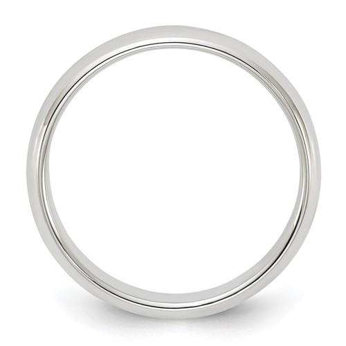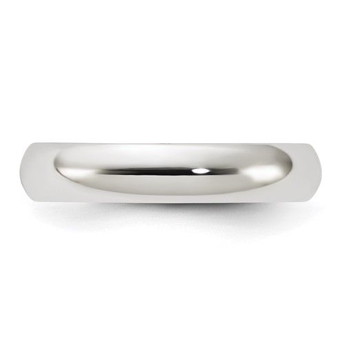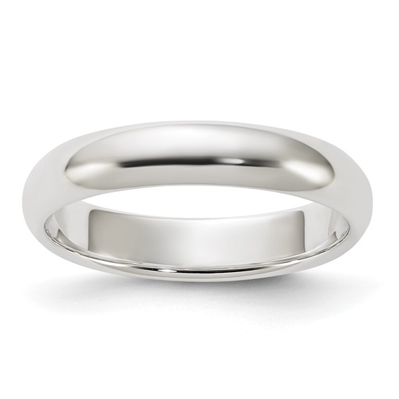 Polished sterling silver oval wedding band is standard fit. Width: 4mm. Thickness: 2mm. Available in whole and half finger sizes only. Made in the USA.