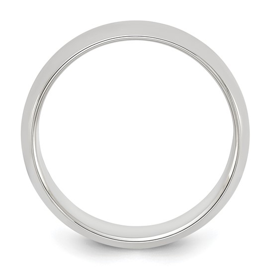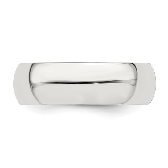 Polished sterling silver oval wedding band is standard fit. Width: 6mm. Thickness: 2mm. Available in whole and half finger sizes only. Made in the USA.