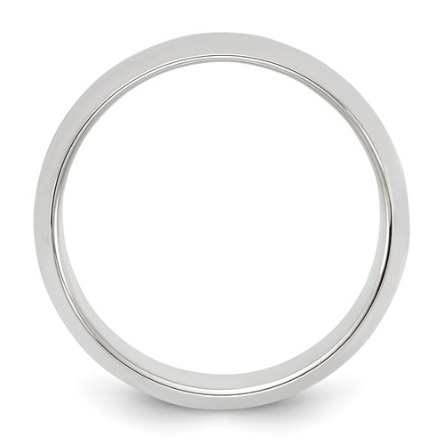 Polished sterling silver oval wedding band is standard fit. Width: 8mm. Thickness: 2mm. Available in whole and half finger sizes only. Made in the USA.