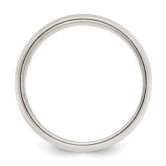 Polished sterling silver oval milgrain wedding band is standard fit. Width: 8mm. Thickness: 2mm. Available in whole and half finger sizes only. Made in the USA.