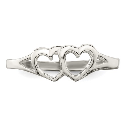 Two open hearts ring is made of sterling silver. Standard fit. Available in sizes 6, 7 and 8 only. Weight: 1.1 grams. Import.