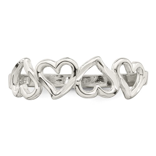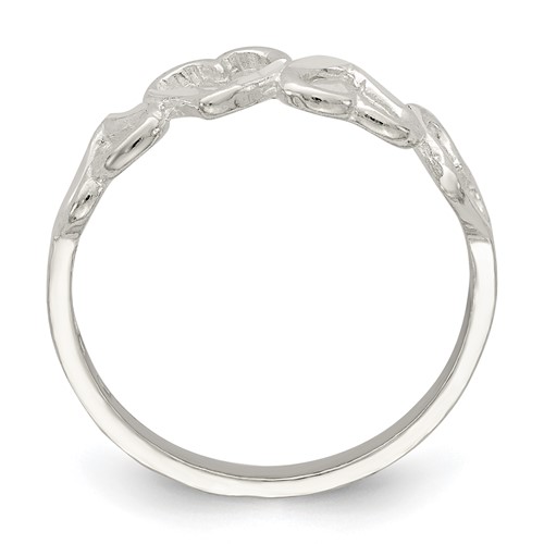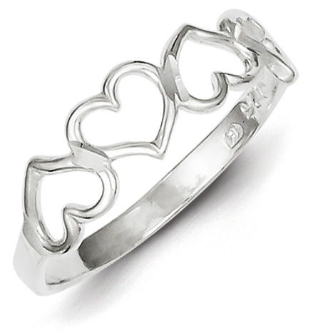 Three hearts ring is made of sterling silver. Standard fit. Size 6 approximate weight: 1.7 grams. Made in USA.
