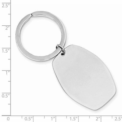 Tapered key chain is made of polished sterling silver. Measures 2 3/4 inch by 1 inch. Weight: 13.8 grams. Made in the USA.