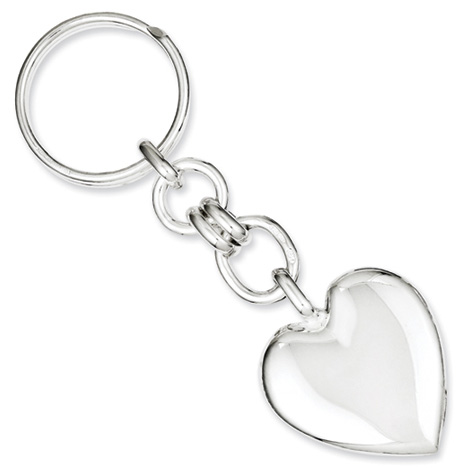 Heart key ring is made of sterling silver. Weight: 19 grams. Measures 3 1/2 inch by 1 1/16 inch.