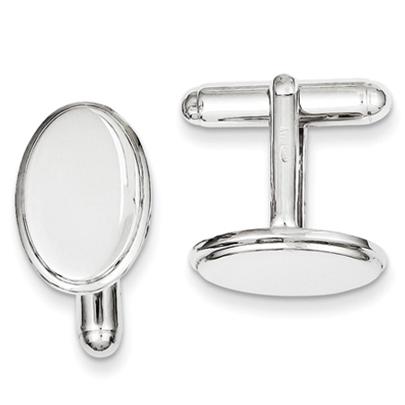 Engravable oval cuff links are made of polished sterling silver. Item size: 5/8in by 7/16in. Weight: 8.89 grams.