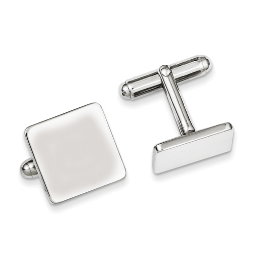 Sterling silver square cuff links have a smooth elegant finish. Measures 9/16 inch by 9/16 inch. Weight: 13.3 grams. Made in Italy.